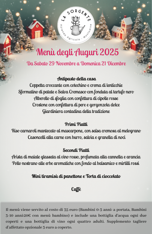 Da Sabato 29 Novembre e per tutto il mese di Dicembre: Menù degli Auguri! Un ricco menù tutto incluso per festeggiare insieme a noi il periodo più magico dell'anno!
